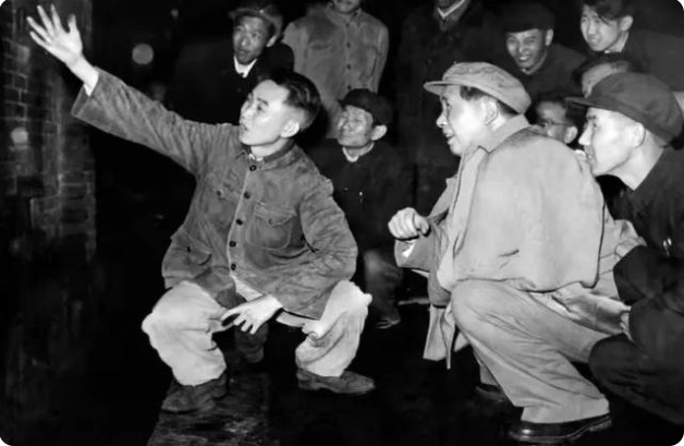 毛主席到隆昌气矿视察 ,在车间里蹲姿详细了解生产情况(图片来源:最内江)