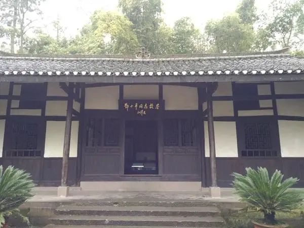 这是一个典型普通的农家三合院,左中右三幢房呈“品”字形摆布,中房略高于左右厢房,是在有五级阶梯的石基上修建的,形状像一把有扶手的靠背椅。整个房屋为土木结构,立柱横梁接头处为穿逗,接近地面一段为木板墙木条窗,接近房顶一段为竹夹泥糊白灰抹墙。小青瓦覆盖房顶。正房后面是一片茂盛葳蕤的竹林,无数长长的竹梢漫过房顶低垂,翠绿浓密的竹叶将后半房顶瓦面遮盖。院坝石栏外的小块地里长着野草、花卉、果树和芭蕉。四周环境显得格外静谧幽美。