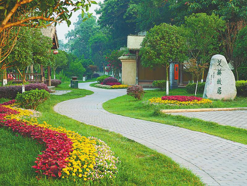 这魅力,来自其深厚的文化底蕴。走进翠云村,扑面而来一座传统的川西民居,青瓦覆盖的小小四合院内,立着三棵生机勃勃的“水冬瓜”树。风一吹过,叶子飒然有声。门口竖立的巨石上,流沙河先生题写的“艾芜故居”四个字清癯有力。