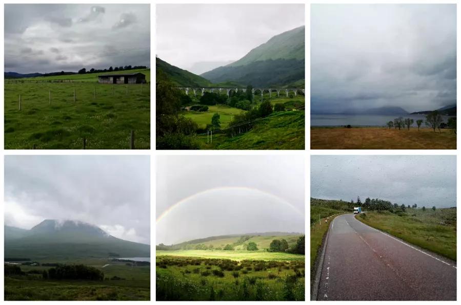 A82公路被称为英国最美公路,它蜿蜒在高山峡谷之中,游走在湖泊与草莽之间。第二天起,我们就穿行在阴晴风雨中的A82线上。