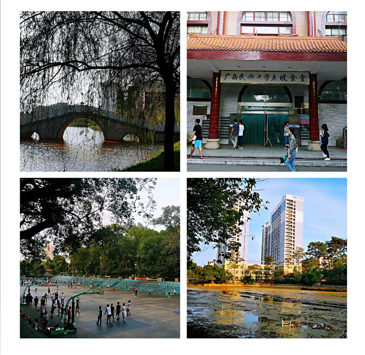 为了一睹相思湖的芳容,我还去了广西民族大学。每一所大学,都有那么一条林荫大道,但不是每一所大学都有相思湖。遗憾的是相思湖正在治理,河水干涸,剩下一片滩涂。不过,仅仅是夕阳下的滩涂,我也能够想象出昔日她的美丽。