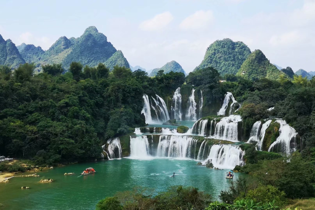 德天大瀑布,位于中国与越南边境处的归春河上游,是《花千骨》的外景拍摄地,神奇而美妙。瀑布气势磅礴、蔚为壮观,与紧邻的越南板约瀑布相连,是亚洲第一、世界第四大跨国瀑布。去德天瀑布是两天的行程,途径山环水绕的明仕田园,让人感受到浓浓的南国田园气息。