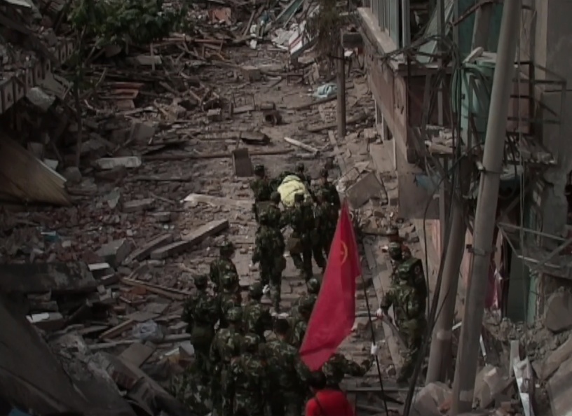 “李馆长,别跑。我们在一起,互相有个照应!”瘦弱精干的李华不由分说,一把将我拽了回来,又招呼她的徒弟围过来,我们3人刚要抱在一起,大地抖动得更厉害了,人根本站立不稳,我还来不及抓住她们,就被重重地摔在了地上。在落下去的一瞬间,我瞧见了旁边的电脑桌,便使出了全身力气,顺势倒在了电脑桌下。随着山崩地裂的地巨响,我们所在的整座楼房坍塌了下来。