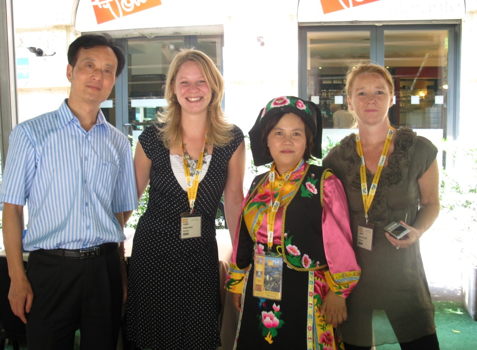 后来,在美籍华人曾蕾教授电子邮件的鼓励下,我的心态发生了变化,把自己当成健康的人,一切从头学起,去挑战工作和生活中的每个第一次。那时,新县城刚刚破土动工,到处都是坑坑洼洼的黄土地,我和副馆长唐成开始筹建永昌镇板房图书室。很多时候,我们在土堆里攀爬,有时遇上泥泞,我的鞋上沾上一大团黄泥,左脚一迈步,鞋子就掉了下来,有几次站立不稳差点摔在泥坑里……家人见我这样辛苦,心疼不行,老是劝我别再上班了。可是我在想,大难都挺过来了,这点苦算得了什么!况且我只有通过多活动筋骨才有利于身体恢复。那一年,我跌跌撞撞地跨出了国门,参加了第75届意大利米兰国际图联大会,把北川人在灾难中不屈不挠的精神,带给了130多个国家的4000名代表,还见到了我心中日夜思念的曾蕾教授。在她的帮助下,我代表北川图书馆与荷兰克劳斯王子基金会成功签订了为北川图书馆捐赠12万欧元建地方特藏室的协议。
