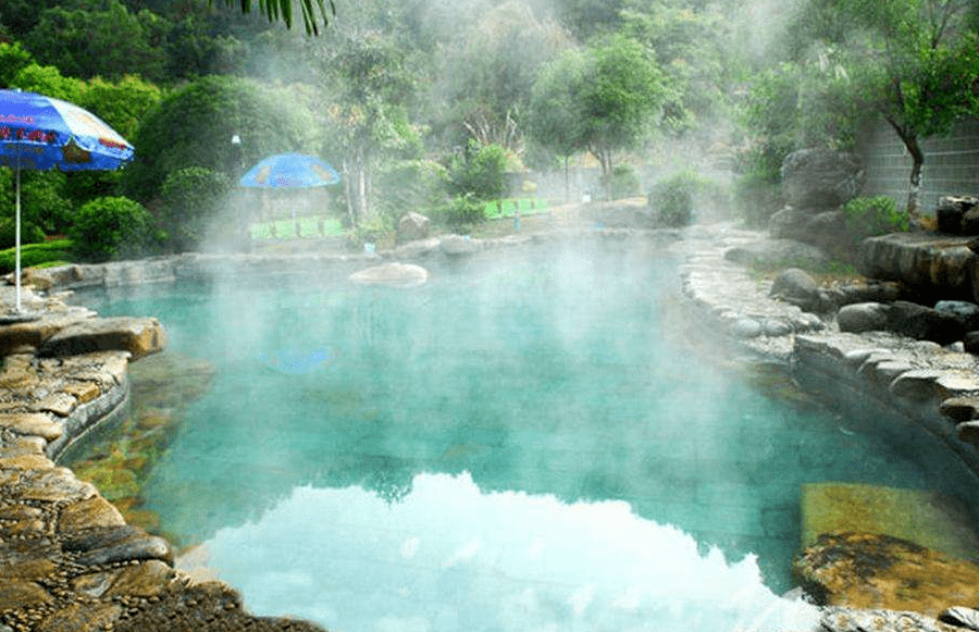 吃完晚饭也是暮色,侄女婿在小温泉池忙着给我们放水,小温泉池热浪扑面而来,侄女婿告诉我温泉水温至少有50摄氏度左右,晚上来的客人基本泡小温泉。大温泉池客人们折腾了一天,晚上十点过水基本没有温度,温泉水放下管道浇灌家里种的芒果林,芒果林是家里的主要经济收入之一。侄女婿每天早晨6点钟清洗大温泉池,然后放温泉水,放满大温泉池水至少需要3个多小时,客人们都喜欢在大温泉池游泳。