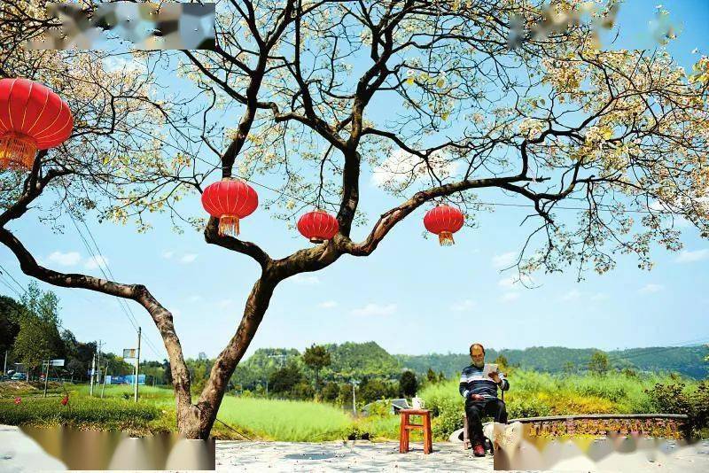 阆中一村民在家门口的桐树下看书(王玉贵 摄,图片来源:四川日报)