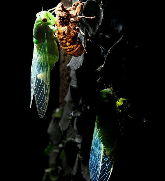 和蝉交往的时间长了,才慢慢明白了蝉的发声主要赖以腹部的两侧的块状薄片,靠身体内部的力量振动这两片薄片来发出响亮的声音。直到今天,我还惊异于长着白色透明的羽翼,有着碧绿色身段、小巧灵活的蝉,他的身体之小和声音之大所形成的强烈反差,真是大自然神工鬼斧早就的奇异组合。虽然,有一些人并不喜欢倾听这种声音,可我觉得它是对灿烂阳光的颂歌,是唤醒疲惫夏季的清新语言。正像“昆虫界的荷马,昆虫界的维吉尔”法布尔对蝉所赞美得:“四年黑暗中的苦工,一个月阳光下的享乐,这就是蝉的生活。”“我们不应当讨厌它那喧嚣的歌声,因为它掘土四年,现在才能够穿起漂亮的衣服,长起可与飞鸟匹敌的翅膀,沐浴在温暖的阳光中。什么样的钹声能响到足以歌颂它那得来不易的刹那欢愉呢?”