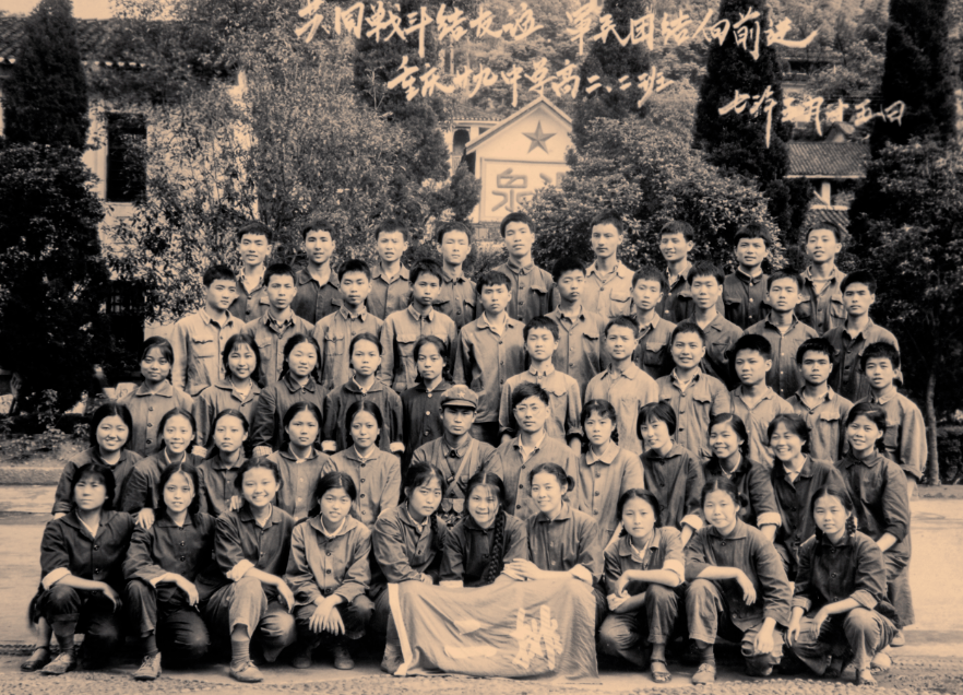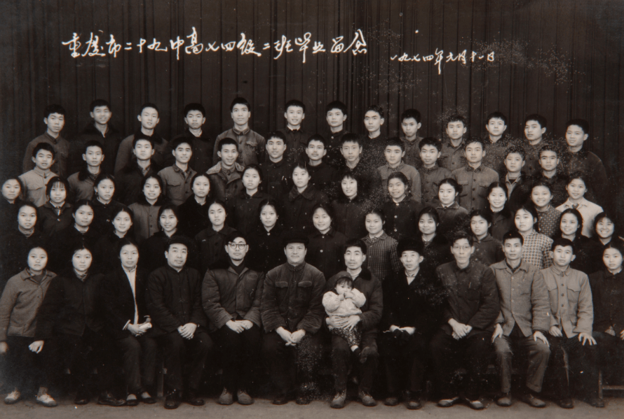 1974年1月11日,重庆市29中高七四级二班毕业照。前排左五为田正先老师,第四排左三为汪毅