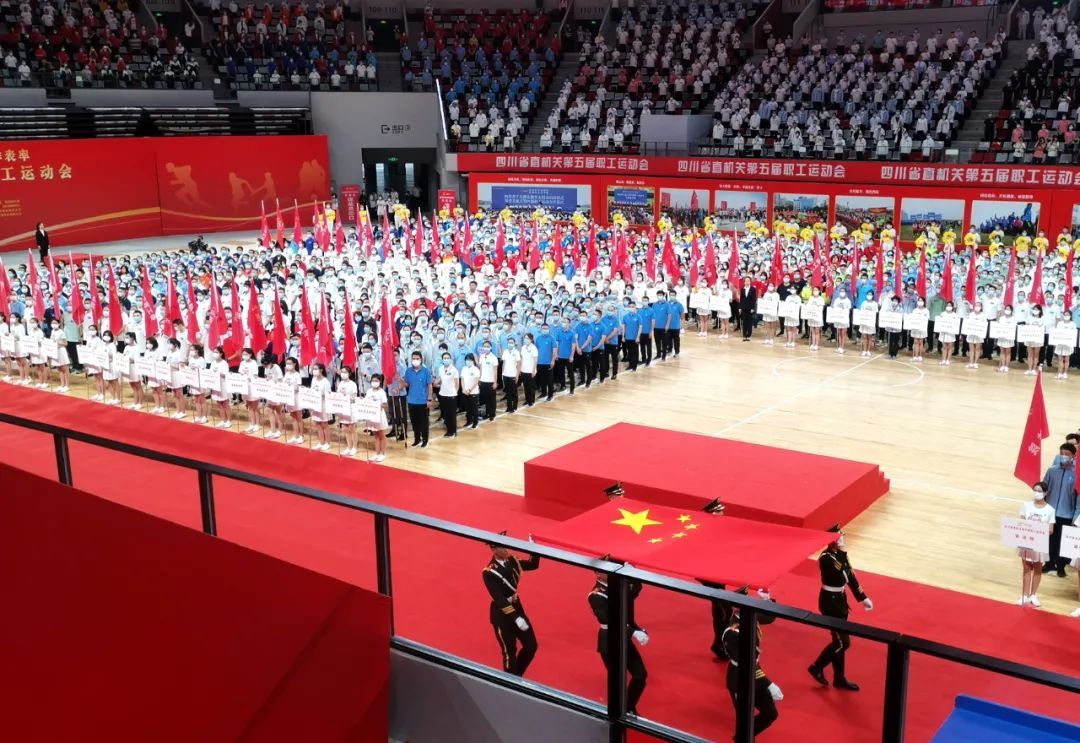 2021年9月25日上午,四川省直机关第五届职工运动会开幕式在东安湖体育公园举行。本届运动会以“庆百年、迎大运、走在前、作表率”为主题,分为在岗职工组和老年组两个组别,设置气排球、羽毛球、乒乓球、网球、足球、广播体操、围棋、象棋、桥牌、太极拳(剑)、门球等13个项目。来自121个省直部门(单位)的5万余名干部职工将参加各项比赛和健步走等群众性体育活动,运动会将持续到今年12月底结束。