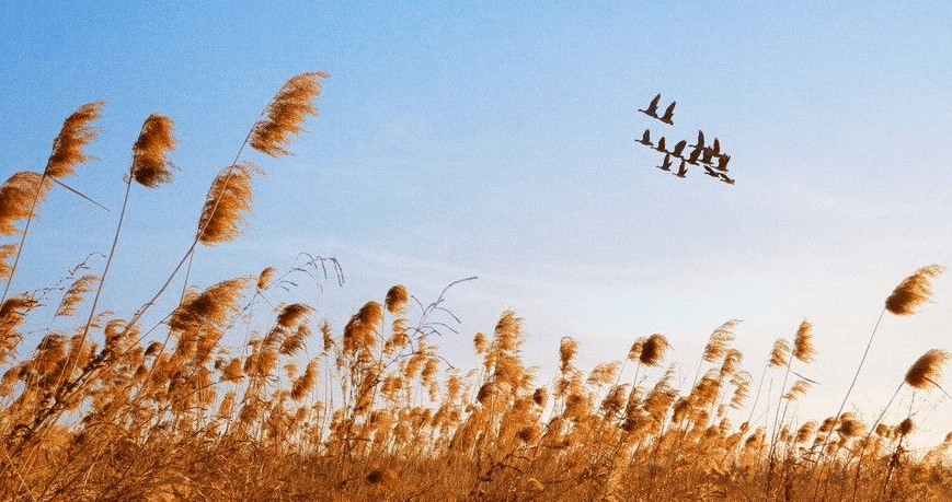 斜阳被归鸟织成面纱