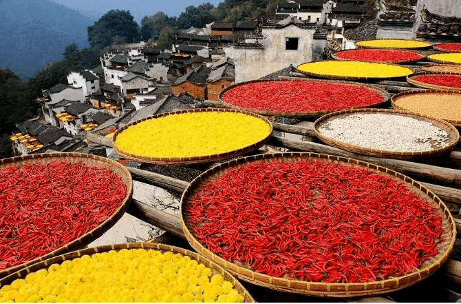 正是丰收气象,鱼虾戏,晚稻飘香。枝头俏,橘柑媲美,瓜果尽张扬。