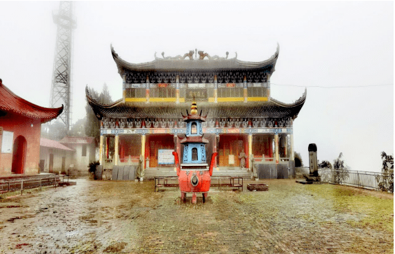更不可思议的是,如此绝顶之巅竟然有清流一股,喷流成池,名曰“天池”,池方圆月3米,池底下凹,中间有一罅,粗处如指,细处若丝,水自罅中喷出,甘冽清醇,冬温夏凉,四季不涸,烹食沏茶,风味别具,世人无不称绝。
