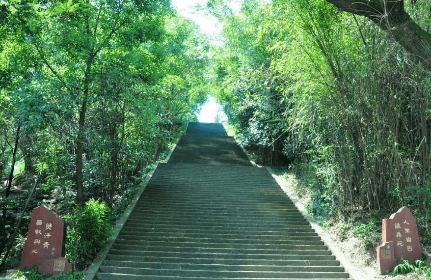 原来那上山的健身梯步,已修葺一新,两旁依然是林木森森,在阳光的照射下一动不动地发着金光,我不知道,它们是否还认得出来30年前曾路过的那个追风少年。我们后脚跟前脚,拾级而上,陡峭的石板路,让我们走起来有些气喘,再也没有当年那一鼓作气的气概,正如身旁如动兔的少年。