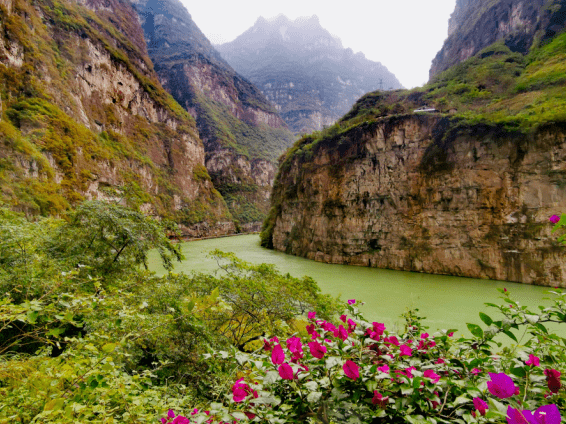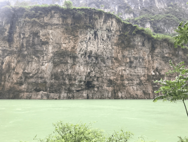 大大小小的瀑布如同长练当空,从云端里飞流而下。河道两岸壁立千仞,许多崖壁几乎呈垂直状态。湍急的河水在崖壁上留下一层层清晰的刻痕,每一层印迹都记录着万年的岁月变迁。