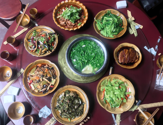我们在汉源县九襄镇用晚餐时,因自驾人员当天的开车任务已经完成,不必担心酒驾受罚,便“放纵”了一把。点了当地特色美食上桌,加上美酒相配,感觉“巴适得板”!