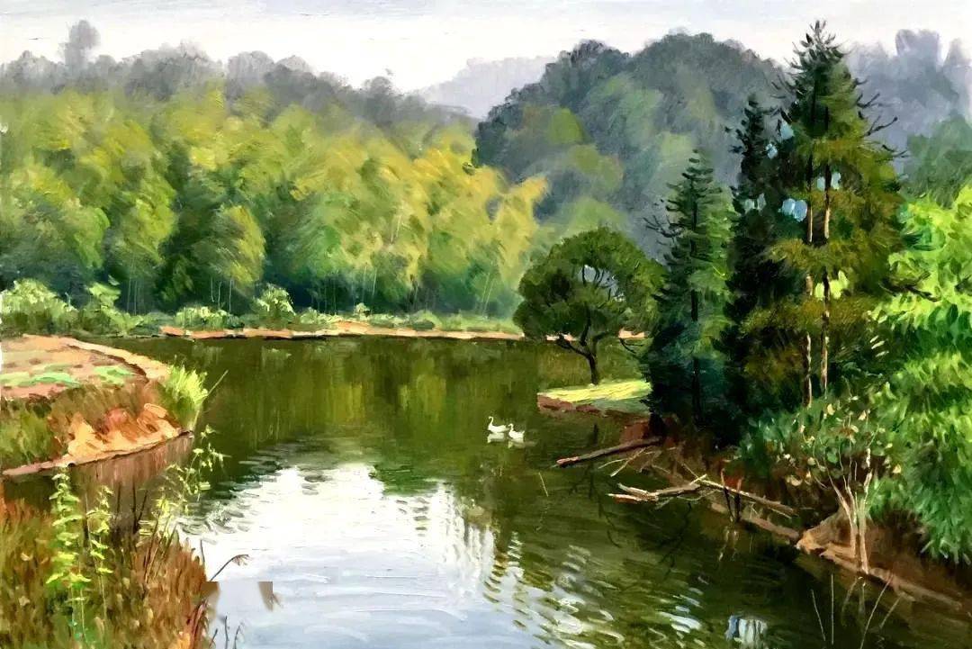 《金色池塘》 油画 葛伟杰 作(图片来源:天府心悦美术馆)