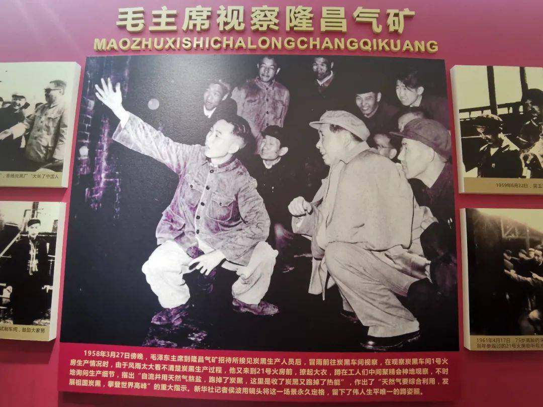 1958年3月27日,毛泽东主席视察隆昌气矿炭黑厂(蓬州闲士 摄于毛泽东主席视察隆昌气矿纪念馆,供图:四川省地方志工作办公室)