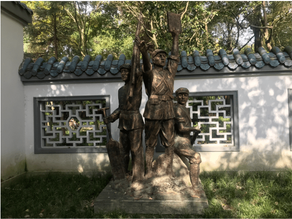 在唐昌镇崇宁公园湖畔,矗立着一座崇宁县抗日阵亡将士纪念碑,这是1946年2月原崇宁县人民为纪念抗日战争中浴血牺牲的将士而修建的。全碑由碑顶、碑身、碑座和基脚4部分组成,高约6米。该纪念碑在四川全省极为少见,具有较高历史价值。2000年,崇宁县抗日阵亡将士纪念碑被公布为县级文物保护单位。在庄严肃穆、翠柏环抱的纪念碑前,我们深深鞠躬,寄托对先烈的哀思。