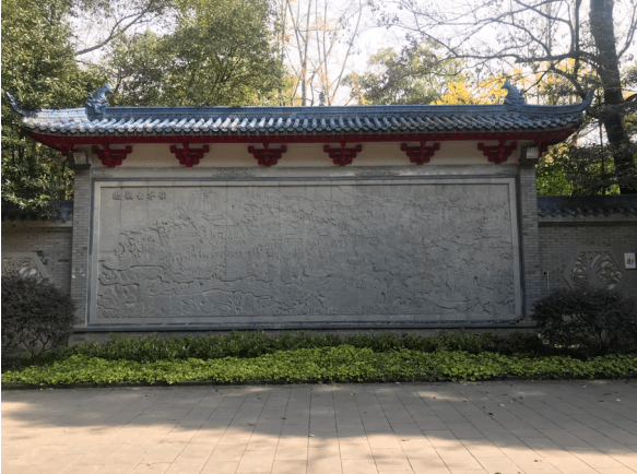 园内一幅兰墙壁画笔调细腻,展现了唐昌古时繁华热闹的场镇街景,让人感到悦目赏心。