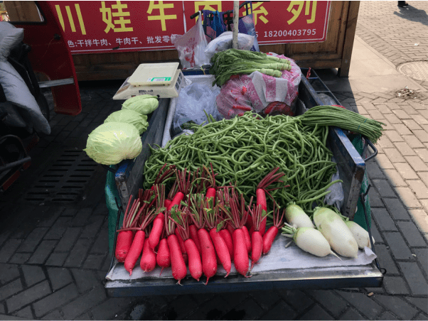 我们来到唐昌古镇时正值逢场,只见菜农们拉来不少蔬菜在街边摆卖。这些蔬菜虽长像一般,但大多是本地村民用农家肥浇灌出来的,鲜嫩诱人,价格也比成都市区便宜。