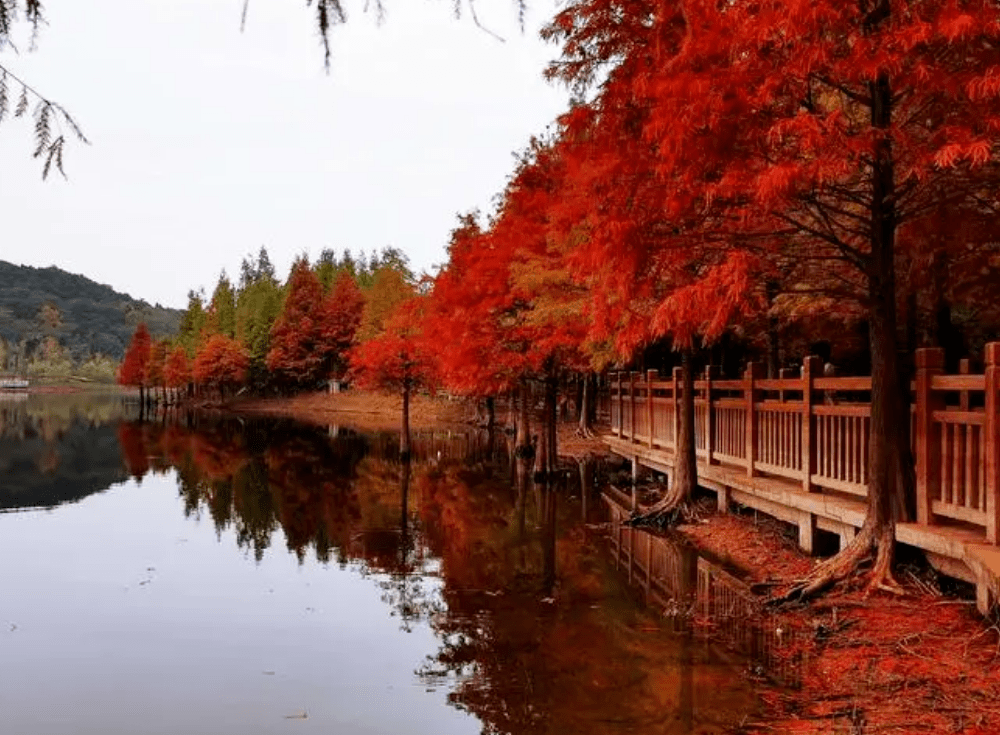 每往前走一步,都能听到脚踩落叶的沙沙声。在拐弯处,情不自禁慢下脚步,和每一片叶子温柔相认,心里似有无数个小秘密在隐藏。我有些陶醉,也有几分唏嘘,这个距家不足二十分钟车程的地方,居然是第一次打卡。曾无数次从山脚下经过,却从未注意到枫叶竟是如此嫣红,而且早已红得漫山遍野、肆无忌惮。近在咫尺的美景,我竟一次次擦肩而过。