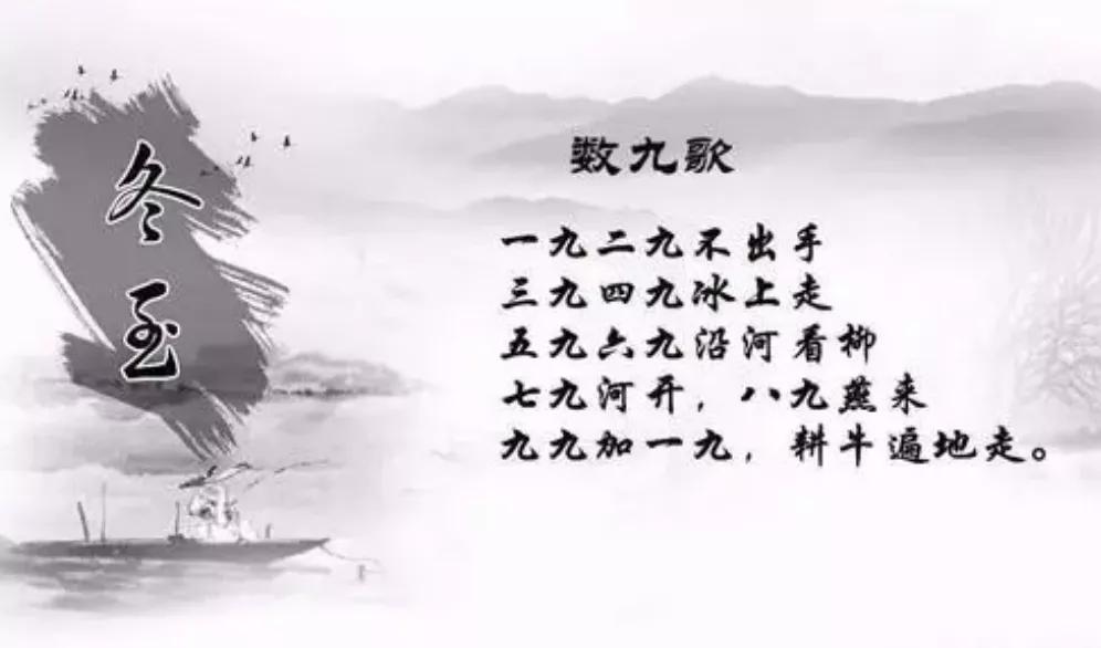 而按照古人长期对自然的观察和把握,又有了以“数九”的方式将严冬进行“分段”。从冬至这天起开始“数九”。冬至后的18天,隆冬初始。所以一九、二九,也就“怀中插手”而已:后面的三九、四九,就是隆冬的极致,连不怕冷的猪狗都小心冻死……不过,漫长的冬季走向极端的同时,也徐徐走向春天。