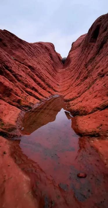 说起红岩滩,总有一股血腥的味道,为什么血色就不能浪漫?眼中的红岩滩,那一抹匍匐在河滩的血色,在缠绵秋雨中更加欲滴娇艳。页岩上的红,是后羿射下三足乌金鸟鲜血浸染?是岩石恋上天上虹的亘古浪漫?还是天上虹对岩石,思念如斯,沉淀、揉碎后的羁绊?反正血色不多不少浸染满红岩滩。