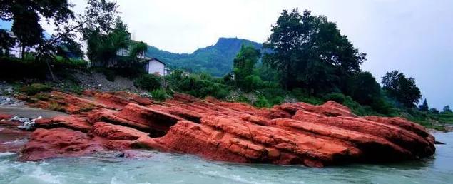 红岩滩,水与页岩交织,水有了页岩的颜色更娇媚,页岩有了水的灵气更雅韵。水缓缓的轻柔,红色页岩静静的就在那里。不管你爱与不爱,喜也不喜,就在沫水河畔肆意的红,精致的红,优雅的红。任清澈的沫水流淌,带走繁华红尘过往,洗尽铅华青衣微澜。