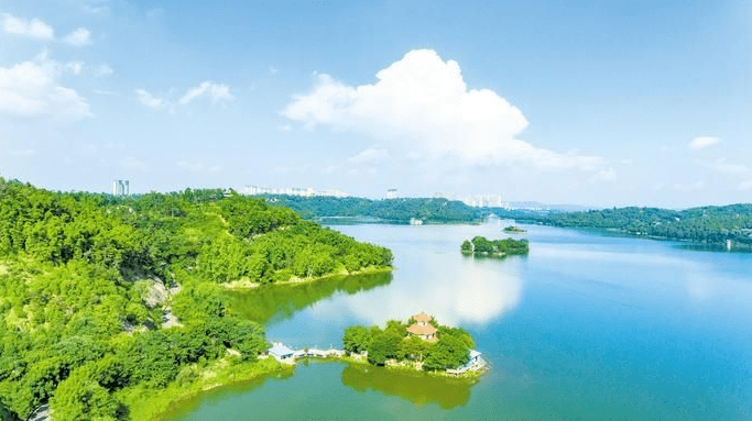 晴日湖光映碧天