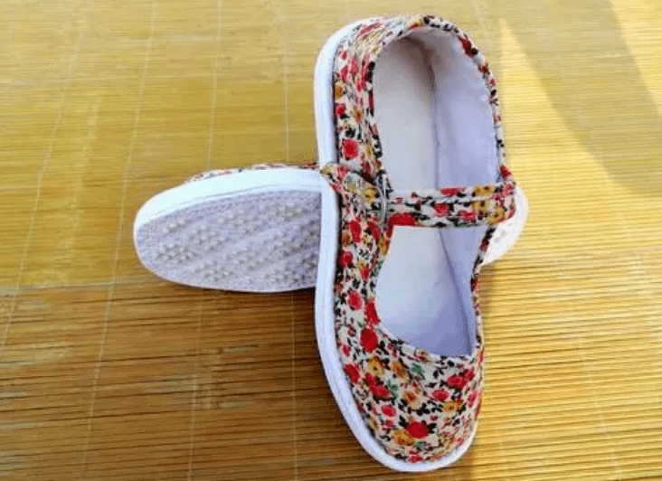 巧手的母亲把粘布一层一层叠加纳成千层底。大人们的鞋帮是带斜纹的清布,我和姐姐的鞋帮是带有黑色波点红色底面的灯草绒。听母亲说灯草绒是从供销社买回的边角料。