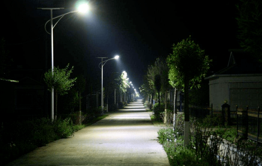 一排排路灯矗立在村里的大路和小巷