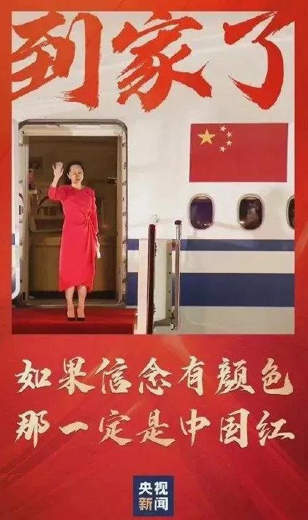 播放影片的这一天,也正好是孟晚舟女士平安归国的日子,她步履从容地走下悬梯,说的第一句话就是:“有五星红旗的地方,就有信念的灯塔。如果信念有颜色,那一定是中国红!”那一番发自肺腑的诚挚话语,让我的泪一下子夺眶而出。