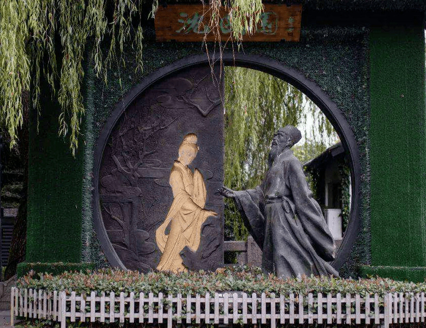 走进沈园,恍然间,我不禁看到了负手于“诗书飘香”之下的放翁,他执一书卷,似乎在寻找某个人的身影,良久,才摇摇晃晃地走向那堵红墙,又像是变戏法般从袖中取出一支笔,转瞬间,一阙小词已飘然立于红纸之上,他似是不舍,又看了一会儿,终是离去。园子里静悄悄的,似乎一个人都没有。突然,花树下多了一柄油纸伞,也多了一对恩爱的夫妻。男子小心地搀扶着妻子,女子则温柔地替他拂去披风上的水珠,一切都是那样的自然、平和。突然,女子的手一顿,红墙上的黑字吸引了她的目光,词下的落款更是让她心念微动。她不顾漫天风雨,离开了丈夫的怀抱,立于红墙之下,许是过了太久,女子终于将视线移开。在回头的那一瞬,她清晰地捕捉到了丈夫眼中的欲言又止,她明白自己的身份,明白那人的情意,也许是真的就这样错过了吧。