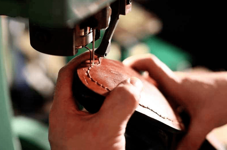 鞋匠嘴里叼着两枚黑铁钉,膝间夹着工字形黑铁钉垫,右手的小铁锤使劲锤下,嗨地一声,拿鞋砸得够实够准。鞋匠换只手,飞快地在上线机上绕了线,两眼眨也不眨,左手掌着鞋子,右手优美匀称地上下绞动,咔咔声中,一双患病的旧鞋已完成了它脱胎换骨的转变。