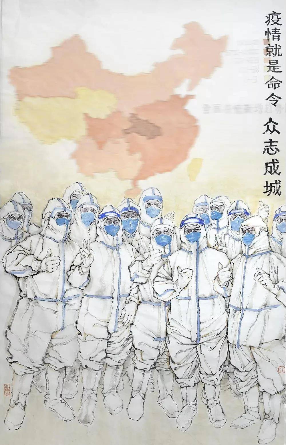 《疫情就是命令》(中国画) 姚新峰 作(图片来源:中国艺术报)