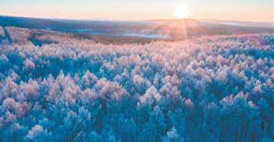 大兴安岭的雪格外厚实。积雪牢牢地扎根在这里,整个林子被重新雕刻成另一番模样。无论夏天这里有多少种色彩,只要到了冬天,就变成了清一色的白色,远远看过去,晶亮一片。直到第二年3月底,林子里的冰雪才开始融化。到了6月,林子又被染绿了。8月底,重新开始变得金黄。