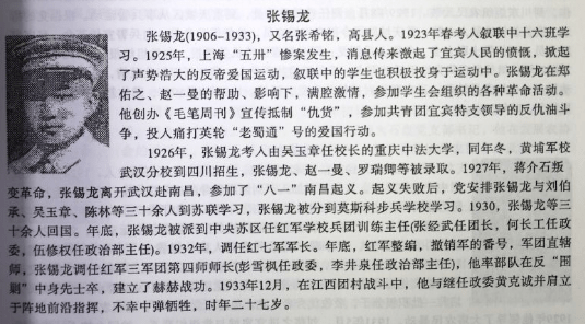 在《宜宾市一中校志》中收录了张锡龙的相关事迹