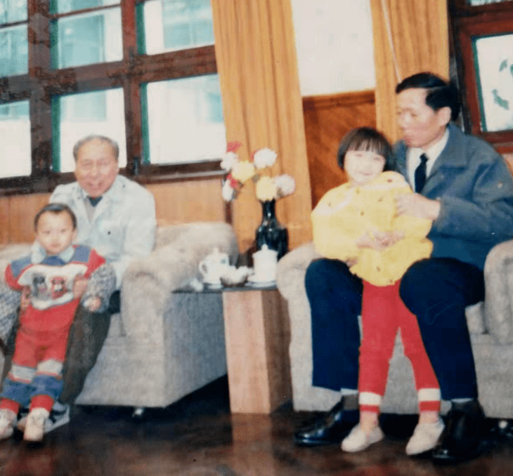 1992年秋,杨汝岱与孙子、魏伯良与孙女一起在峨眉山疗养院合影留念(刘玉莲 供图)