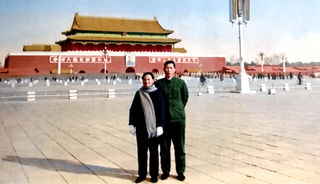 1983年冬,魏伯良与结发妻子李伍云在北京天安门合影留念(刘玉莲 供图)
