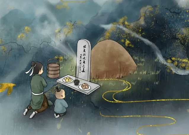 据史书记载,早在秦汉时期,华夏大地墓祭已成为不可或缺的礼俗活动。《汉书·严延年传》记载,严氏即使离京千里也要在清明“还归东海扫墓”。随着祖先崇拜和亲族意识的越来越强固,远古时代没有纳入规范的墓祭,也归入了“五礼”中,之后朝廷的推崇也使墓祭活动更为盛行。祭祖民俗相沿数千年,成为具有深刻意义的一个古老节日。因为冬去春来,草木萌生,人们到先人的坟墓,会亲自察看坟墓是否因雨季来临而塌陷,或被狐兔穿穴打洞。在祭扫时,给坟墓铲除杂草,添加新土,供上祭品烧猪,燃香奠酒,焚烧纸钱及举行简单的祭祀仪式以表示对祖先的怀念,以示不忘先人,不忘故土的真挚深情。因此,是否可以说,在某种意义上一个国家与文明的历史,是靠个人与家庭的传续来完成的。没有个人与家庭的传续,历史将是苍白、抽象而没有人情味的。清明节的祭奠仪式是个体与历史连接的精神脐带,使我们的身份清晰而神圣。“追远”不仅有“民德归厚”的教化意义,还会让活的人获得面向未来的力量,确定个体与时代的历史位置。缅怀先人,祭祀先祖,因为他们是我们的来源,他们的辛劳和奋斗是我们继续前行的起点,这是尊重生命与敬畏历史的经典之作,是中华民族凝聚人心、战胜困难的无畏力量。