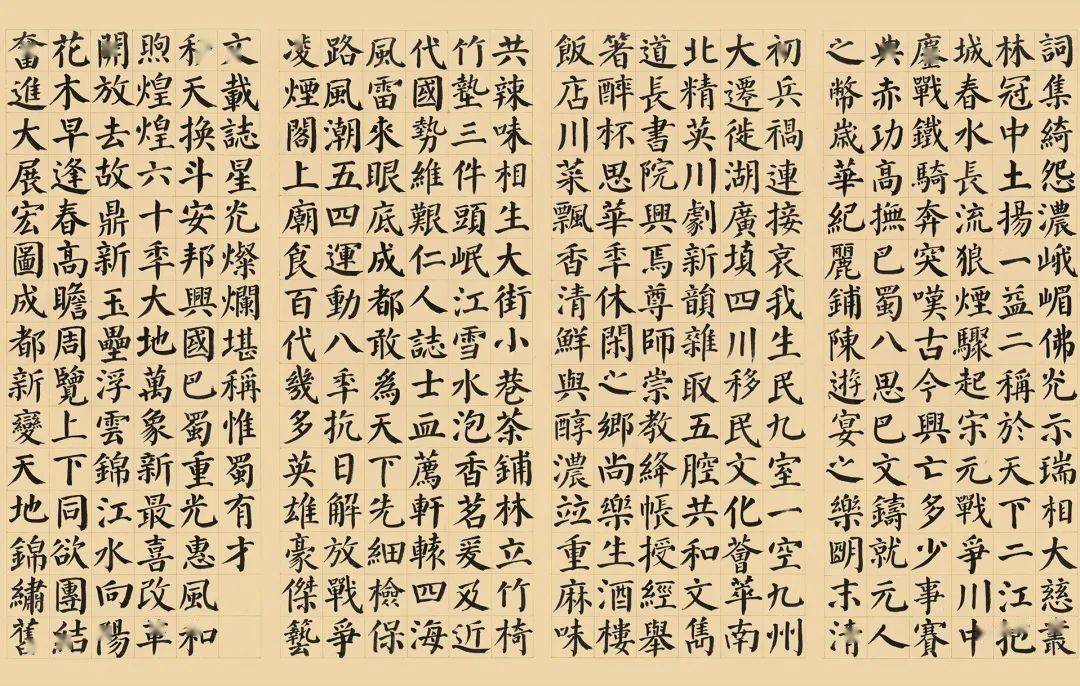 《成都赋》,由被誉为“三大词赋家”之一的何开四先生撰文,该文刻于天府广场石碑之上。 该赋从“远古洪荒”到“秦扫六合”,从“三国鼎立”到“自唐迄宋”,从“明末清初”到“改革开放”,道尽历史兴替,历数古今人文,铺陈辉煌文明。为过往“锦里繁华,千古流韵”而著述,为当下“阳光丽景,幸福成都”而放歌。该赋辞藻瑰丽,朗朗上口,读罢掩卷,成都大气恢弘的历史画卷如穿行时空隧道般历历在目,震撼人心,催人上进。可谓咏成都之名赋。