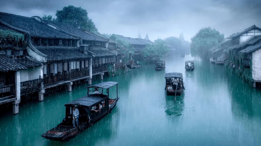 在这轻如一叹的雨声中,我突然起了凭栏远眺的兴致。极目望去,我看见城市的边缘淹没在一片低矮的粉墙黛瓦里,而那粉墙黛瓦又被笼罩在一片薄雾般淡青色的烟雨里,烟雨的尽头是一汪迷离得精致的天空,游弋着数不清的轻纱般的云朵。