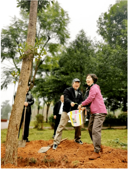 2020年11月,“大地文心”生态文学作家采风团在丹棱县种下桢楠树。图为作家叶梅(右)、郭雪波(左)在种树(张黎 摄,图片来源:中国环境报)