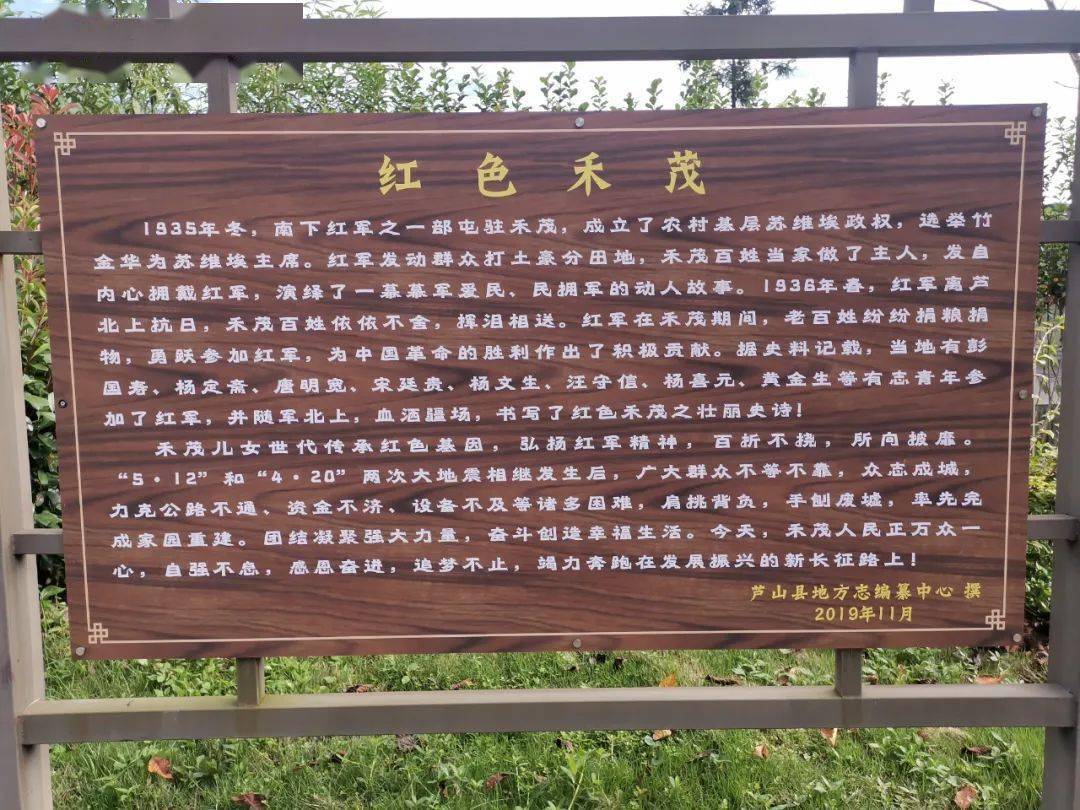 1935年9月,红军长征北上抗日,途经芦山,在沙田坝集结,利用禾茂渡口不分昼夜摆渡伤员以及战略物资转移,通过禾茂石槽窝秘密运粮道至天全后田坝,最终,到达红军村战地医院。在转移途中,因水流湍急造成翻船事故,多名红军战士、伤员溺水牺牲,物资被毁。但英勇的红军并没有在困难面前退缩,安埋好战友,擦干眼泪,继续前进。从此禾茂渡口,又被称做“红军渡”。