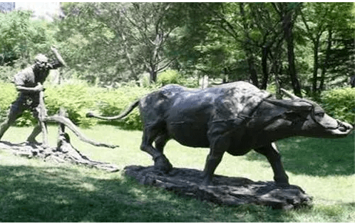 弯弓的牛拖着铧犁