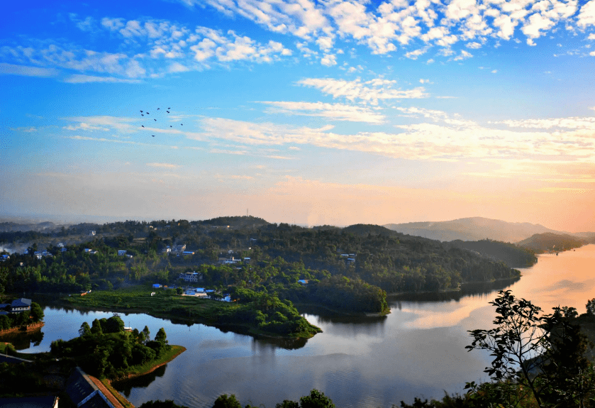 仰卧在隆昌的怀抱,古宇湖像一枚又长又弯的豆荚,静谧、妩媚、缥缈、浩瀚。据资料记载,古宇湖面积5.4平方公里,最大水深27米,环湖周长32公里。湖面宽阔,水质清亮,岛屿林立。可以说,那是我见过的最大的人工湖。