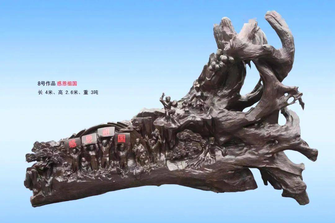 《心碑》大型根雕8号作品:感恩祖国(杨三 创作)