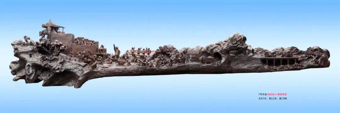 《心碑》大型根雕7号作品:艰苦奋斗 重建家园(杨三 创作)