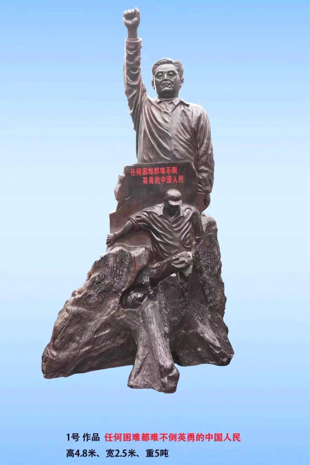 《心碑》大型根雕1号作品:任何困难都难不倒英勇的中国人民(杨三 创作)
