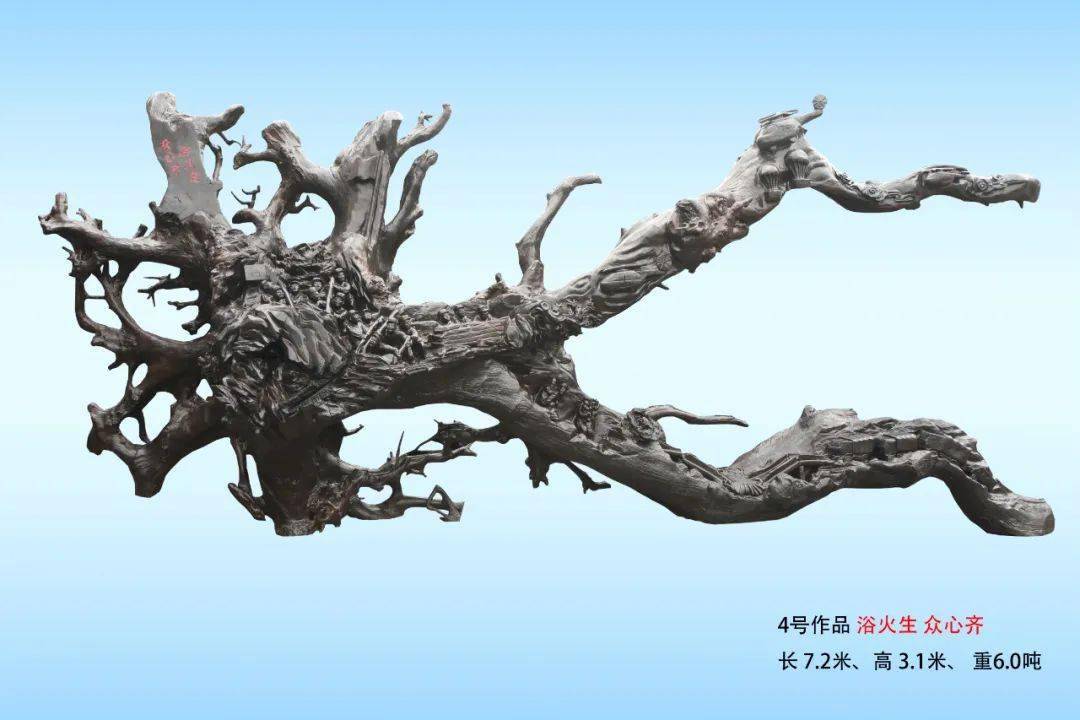 《心碑》大型根雕4号作品:浴火生 众心齐(杨三 创作)